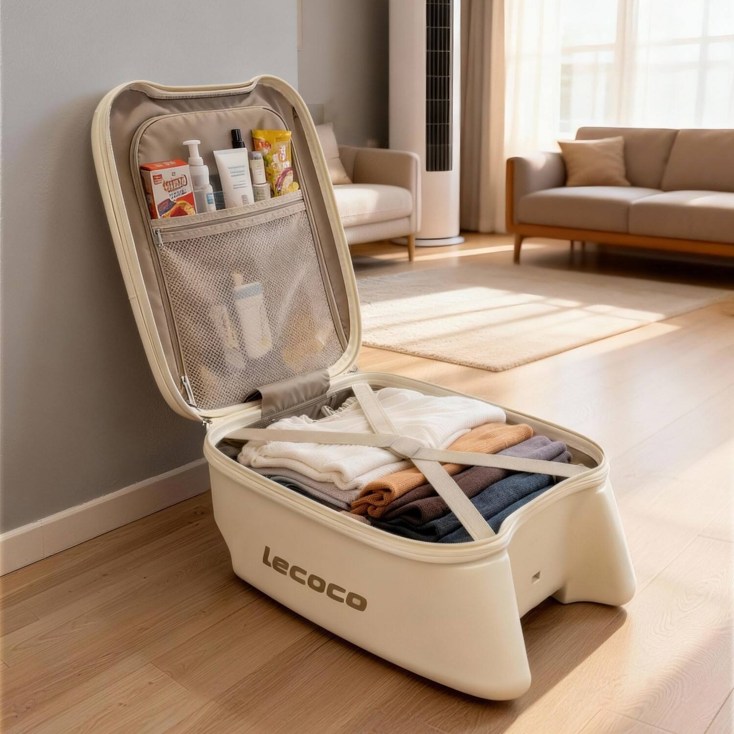 From luggage to stroller to a steady seat for tired legs—a single form holds multiple ways to move. Its quiet wheels and considered interior turn travel from transit into a carried space, a familiar ground that goes where you go. |